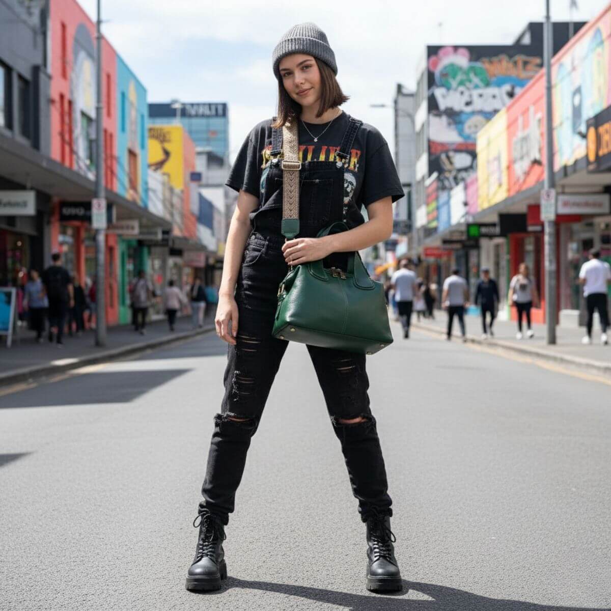 Adele Emerald Green Leather Boston Crossbody Bag – Retro Crossbody Handbag NZ