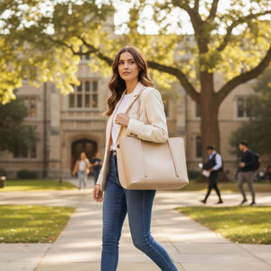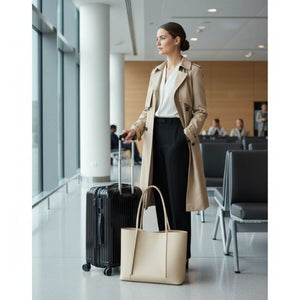 The Metro Large leather Tote in Apricot Beige combines a magnetic snap closure with a spacious compartment for daily essentials. An internal compartment provides simple organisation. Wear it over the shoulder or carry by hand—a versatile choice for work, commuting, shopping and weekend outings.