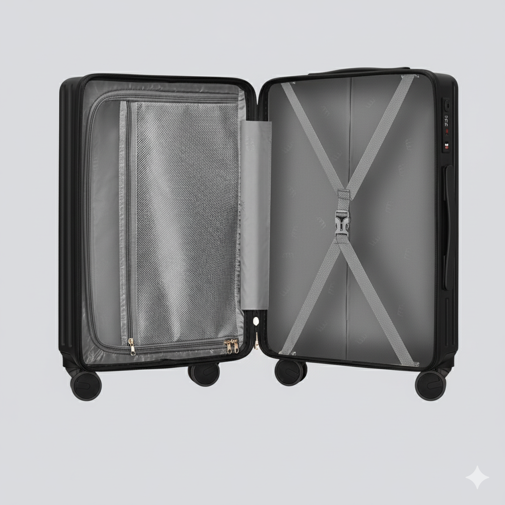 Meet the AeroRidge 20 inch Black carry on suitcase — an ultra-lightweight yet durable polycarbonate case engineered for modern travel. The reinforced shell balances minimal weight with maximum protection, while 360° double spinner wheels glide effortlessly through airports.