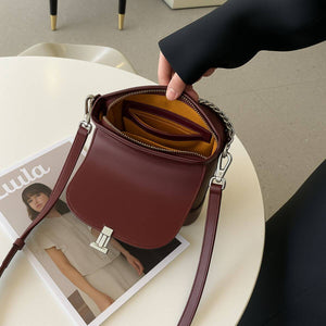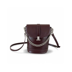 Elegant, compact and effortlessly stylish, this mini leather bucket crossbody bag brings a refined touch to your everyday wardrobe. Crafted from premium cowhide leather, it features a structured silhouette with a chic chain accent, giving it a polished, modern look that pairs beautifully with blazers, knitwear, denim and dresses.