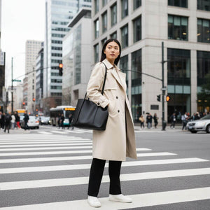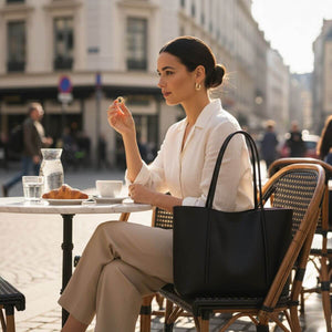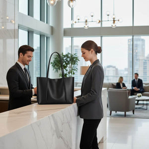Home Tote Bags Large Leather Work Tote Bag for Women NZ with Compartments - | Metro | Black