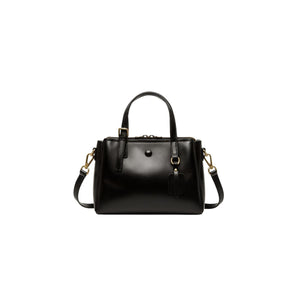 Black Leather mini Tote Bag with Zipper & Crossbody Handbag for Women | Retro Muse
