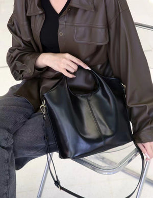 Designed for modern women who want both elegance and practicality, this leather bucket shoulder bag offers a spacious interior in a clean, minimal silhouette. Crafted from premium cowhide leather, it features a soft yet structured form that pairs effortlessly with blazers, coats, knitwear and everyday outfits.