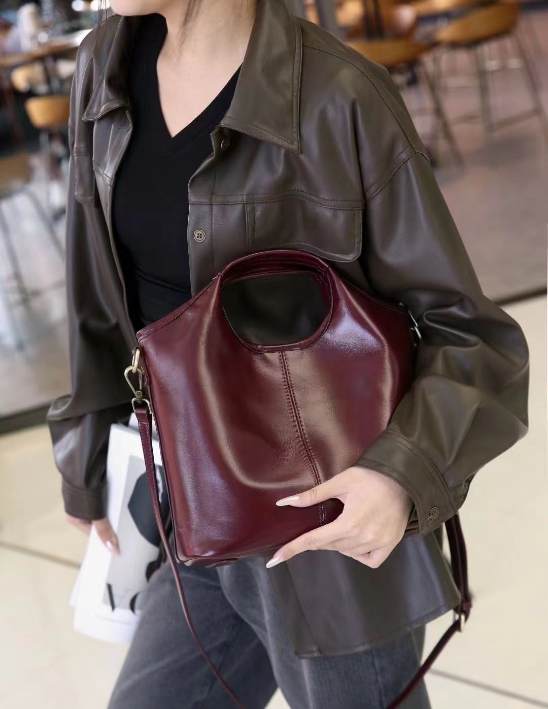 Retro Grace Burgundy Leather Shoulder & Crossbody Bag