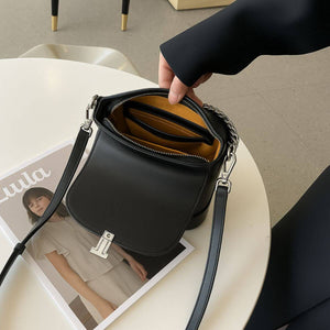 Elegant, compact and effortlessly stylish, this mini leather bucket crossbody bag brings a refined touch to your everyday wardrobe. Crafted from premium cowhide leather, it features a structured silhouette with a chic chain accent, giving it a polished, modern look that pairs beautifully with blazers, knitwear, denim and dresses.
