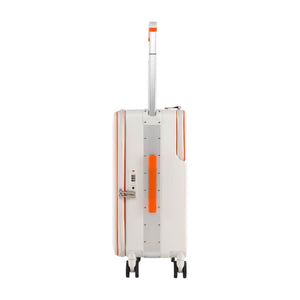 The NeoMove White 25 inch check-in luggage combines minimalist aesthetics with structural resilience. Crafted from a 1.6 mm thick composite polycarbonate shell, it resists deformation, impact, and scratches even after repeated use.